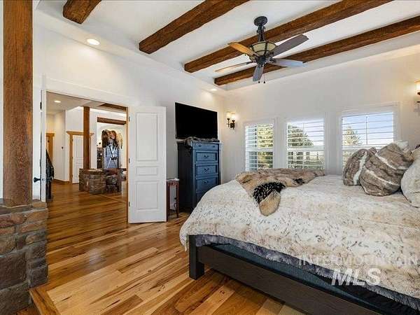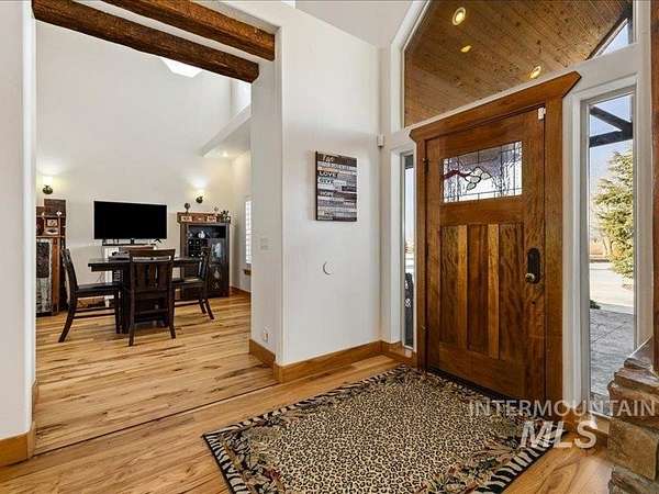 This beautiful estate has been thoughtfully reimagined with extensive renovations completed mid-2024 through early-2025, offering modern comfort, refined finishes, and long-term peace of mind. Exterior improvements include new paint, new roof, expanded concrete driveway, patio, and side yard, professionally installed rock landscaping, 37 newly planted trees, a new 2025 irrigation system, and added architectural gables for timeless curb appeal. Inside, the home features crisp white paint throughout both levels and new wood flooring in the primary suite, main-level living areas, and three upstairs bedrooms. The primary suite has been fully remodeled, creating a private retreat with upgraded finishes and tile flooring in the bath. The pantry, laundry room, and mud room have all been completely redesigned for enhanced functionality and everyday ease. Major system upgrades include a tankless water heater, whole-house humidifier, updated electrical components, security system with cameras, and tinted main-level windows for energy efficiency. Both the attached garage and the newly-built, temperature-controlled 2,400-square-foot shop feature epoxy flooring and are ideal for recreational vehicles, storage, or workshop use. Don't miss this rare opportunity to enjoy the privacy of a rural luxury property with unobstructed views of the surrounding valley.