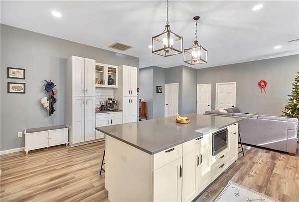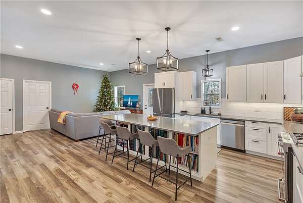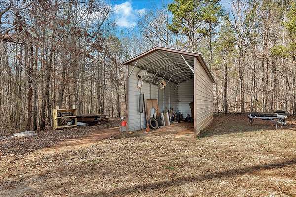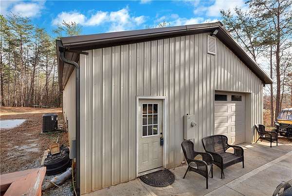 Beautiful 25+/- Acres with 3 Creeks, Barndominium, Additional 2 Bay Garage, RV Carport. 2 RV Hook Ups and Cleared Home Site. Conveniently located between Pickens and Greenville just minutes to Hwy 11. If you are looking for land with gently rolling topography, streams and the opportunity to live on site while building your permanent home look no further. Enter through a gate and enjoy the drive past creek where you will come to a level cleared building site with septic permit already in place. Natural gas & water are located on Pumpkintown Hwy if you wanted to connect. Currently on well with propane gas. Completed in 2022 the two bedroom and one bath barndominium is 1200 finished square feet with an additional 600 square foot garage. Enjoy very comfortable living with a large cooks kitchen and center island with gas cooktop, deep well sink and even a coffee station. Low maintenance LVP flooring throughout home. Big open bathroom doubles as spacious laundry area. Much of the property is wooded but can be access easily on 4 wheel trails. The current owners have family living in the 2 tiny homes. They do not convey with property, but do offer remaining RV hookups for new owner. Fiber on property for internet. Don't miss this incredible opportunity!