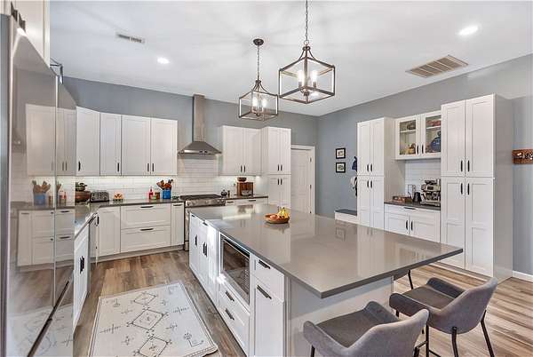 - Dishwasher, Disposal, Electric Oven, Electric Range, Gas Cooktop, Microwave, Plumbed For Ice Maker