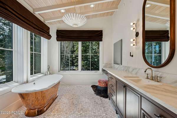 A singular opportunity in Park City's most coveted neighborhood, this rebuilt and reimagined White Pine Ranches estate offers 4.5 wooded acres of total privacy, panoramic views, and rare direct ski access to the Tombstone lift. Designed and expanded by renowned architect Scott Jaffa and interior designed by AD-featured designer Susannah Holmberg, the 9,400+ square foot residence masterfully blends modern mountain architecture with warm, layered interiors. With approvals in place for a guesthouse, barn, and even a private poma lift, this is more than a home-it's a fully realized mountain compound ready for the next chapter.
