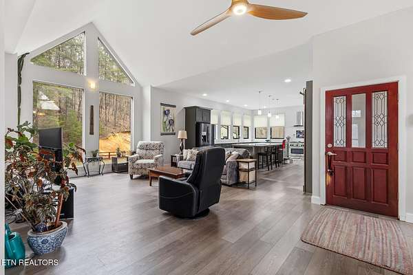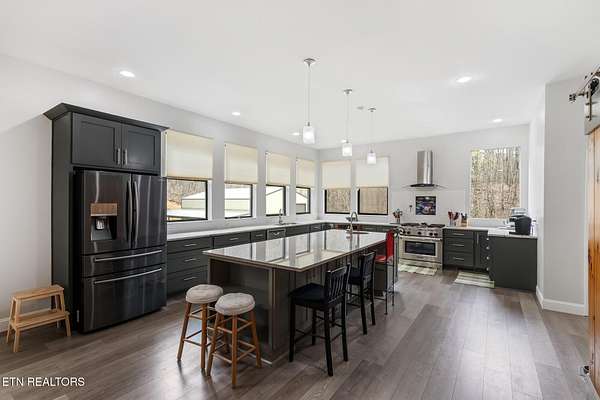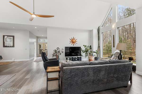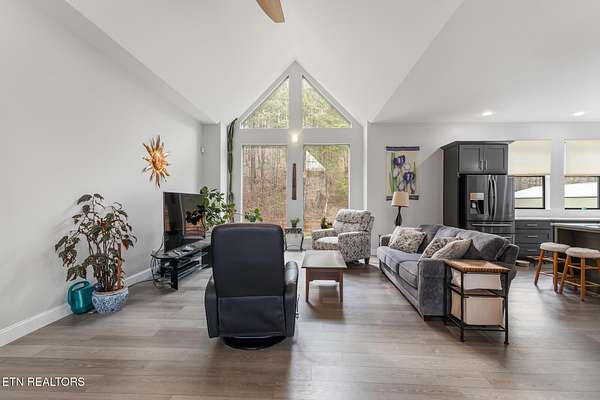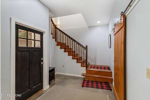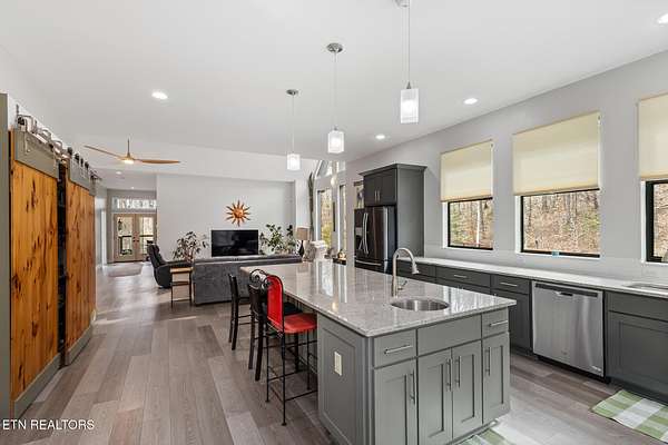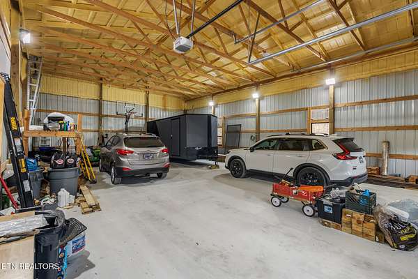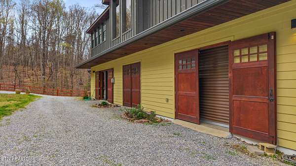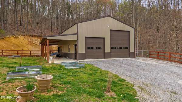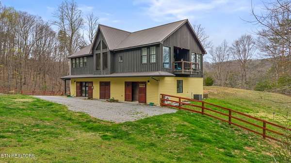 SECLUDED, private 24 + wooded acres with a creek. If you like hunting your closest neighbor is the deer and turkey roaming in the woods. The home is most unique in design, somewhat like a barndominium. Just imagine sitting on the porch having coffee or grilling as the sun rises or sets and all you see is squirrels and rabbits and all you hear are the birds and country sounds. The awesome sounds of East Tennessee. Going into the lower level is full bath , office/ sewing room, family room with huge stacked stone wall fireplace. 2 more rooms that can be bedrooms or whatever you choose., and the machanical room. Barn doors open to give lots of natural light. One is a garage work/ shop space.Also has area for laundry room. On up the beautiful stairway to un-ending windows that surrounds the open floor plan. Gourmet kitchen has Gigantic eat at island and separate dining area great for large family dinners. Pantry is across an entire wall. Beautiful cabinets and tons of counter space. Surround windows that views the property from every direction. Master suite offers king size bedroom and open walk-in tile shower with laundry room. Just wallk out onto a beautiful balcony . Another bedroom just off the kitchen area. Then let's check out the 32x48 RV / toy barn. has poured concrete floor, 100 amp electrical service, 3 powered garage doors, roof has spray foam insulation roof height is 16'. Has LED lighting and tempered glass basketball goal. Could use this building for basketball , volleyball, etc One could go on and on about htis wonderful property. But can only appreciate what it has to offer in real time close up. Only 10 minutes to Watts bar Lake and shopping, doctors, and McDonald's.