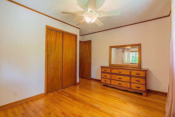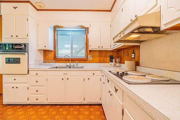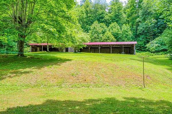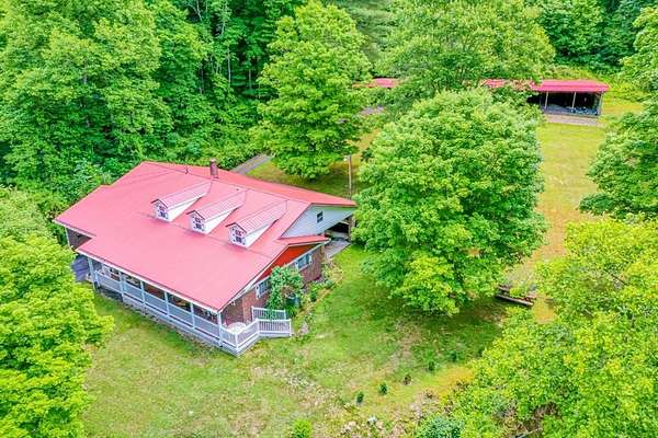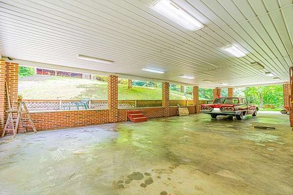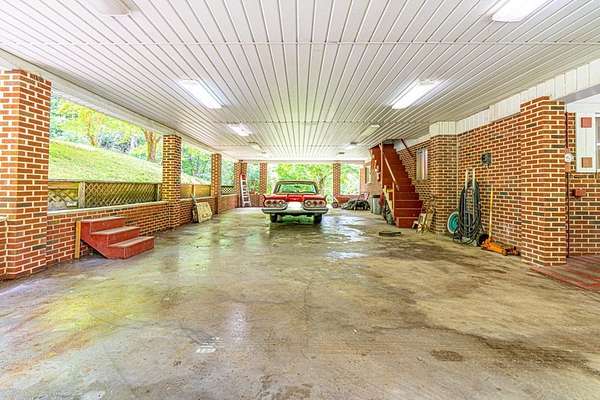 LOOKING FOR PRIVACY? This may be "The One for YOU!" This brick ONE LEVEL home with a basement could be yours! From the entrance at the road up the paved driveway and thru the locked gate, this home sits overlooking a bold creek. It has a nice front porch, over 1700 sqft covered carport for the car enthusiast or a large entertainment area outside. The hardwood floors are in the living room, hallway and bedrooms. The hall bath has been tastefully updated and is spacious. The eat-in kitchen has white (freshly painted) cabinets and is an eat-in kitchen. The only appliance that remains is the cook top. There are three bedrooms - in one of the bedrooms there is a shower only (not a full bath). The basement has approx. 800 sqft finished with a den/family room and office. The laundry is located in the basement. With central heat and air that is serviced by a heat pump, it's fairly easy to heat/cool. In addition there is a walk-up stairs to an attic area for additional storage. The 80' x 16' equipment shed/car storage area would hold quite a few vehicles or make a great beginning of a workshop. The roof is a metal and the windows are original to this home. This home is being sold AS IS. The photos were from the previous listing when current owner purchased the home.