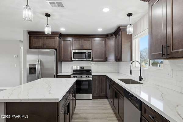 Welcome to your dream property in beautiful Chino Valley, AZ! This fully updated 3-bedroom, 2-bath home boasts a thoughtful split floor plan that maximizes comfort and privacy, perfect for families or anyone seeking functional, modern living. Situated on approximately 2.5 acres of fully fenced land, you'll enjoy the freedom and space of country living with plenty of room for animals, hobbies, or future expansions.Step inside to discover a completely remodeled interior with all new finishes throughout -- fresh paint, updated flooring, stylish lighting, and modern fixtures create a welcoming atmosphere from the moment you arrive. The open living area flows seamlessly into an updated kitchen -- perfect for everyday living and entertaining alike.Outside, the expansive property features wide-open views, plenty of privacy, and a giant outbuilding that's ready for your imagination. Use it as a workshop, oversized garage, tack room, or creative studio -- the possibilities are endless! The fully fenced perimeter gives peace of mind for pets, livestock, or play, and the gently rolling terrain adds character to this rare offering.Key Highlights:Spacious 3 bedrooms + 2 full bathrooms with a smart split layoutFully renovated and updated -- modern comfort with country styleApproximately 2.5 acres, fully fenced for privacy and securityMassive versatile outbuilding -- perfect for vehicles, projects, storage, animals, and moreGreat location close to local amenities while still offering peaceful rural livingBeautiful outdoor space with room to roam and growThis is a rare opportunity to own a completely updated home with acreage and a high-value outbuilding in a sought-after Chino Valley location. Don't miss out -- come see what country living at its best really feels like!