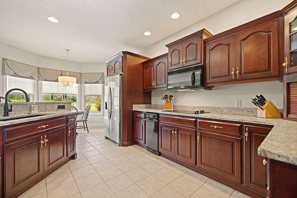 - Cooktop, Dishwasher, Double Oven, Microwave, Refrigerator, Vented Exhaust Fan
