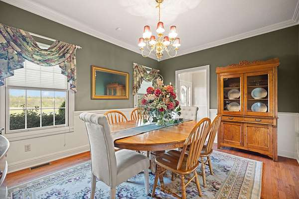 Experience Central Kentucky country living at its finest! Discover your dream home at 2477 KY Hwy 1194 in Stanford, KY. Situated on 18 beautiful acres, this stunning all-brick home offers over 5,200 square feet of living space and an impressive list of features. This one-owner, smoke-free home was built in 2001 and has been meticulously maintained. It includes 5 spacious bedrooms, 4.5 bathrooms, and an abundance of closet and storage space throughout. Designed for efficiency, the home is equipped with a full geothermal heating and cooling system. On the main level, the primary suite features a 9-foot double vanity, a drop in soaking tub with jets, and a large walk-in closet. The kitchen is both functional and inviting, boasting custom cherry cabinetry, new granite countertops, a new sink, and a new cooktop. Nine-foot ceilings throughout the main level enhance the home's open and spacious feel. The layout flows seamlessly, with an elegant dining room on one side of the kitchen and a cozy breakfast nook and expansive living room with beautiful hardwood floors on the other. Two additional bedrooms and a full bathroom are located on the opposite side of the home from the primary suite, offering privacy and convenience. A half bath near the foyer is perfect for guests. The main level also includes a 25x30 attached two-car garage and a full laundry room with custom cabinetry matching the kitchen. Upstairs, you'll find a large bonus room or playroom, along with two additional oversized bedrooms, each with generous closet space and attic access, plus another full bathroom. The finished basement adds even more versatility, featuring a full bathroom, propane fireplace, full bar area, storage room, and an additional room that can serve as a bedroom, office, or extra storage and a massive family area that has access outside to a concrete drive area. The basement can also be accessed through a second attached garage measuring approximately 15x45, providing space for two more vehicles. The living room and primary bedrooms offer a tray ceiling that just adds to the beauty. Intricate crown molding throughout the home. Outside, the property is just as impressive. A 32x48 shop with doors on both ends and a lean-to shed offers ample workspace, complete with electric and water access. A dedicated garden area behind the home also includes water and electric hookups. Enjoy peaceful country views from the spacious front and back porches, offering both privacy and relaxation. Conveniently located just 10 minutes from Stanford or Danville, 45 min to Somerset and only 45 min from Lexington, this property provides the perfect balance of quiet country living and accessibility. Opportunities like this don't come along often-don't miss your chance to own this incredible property!
