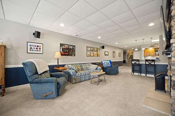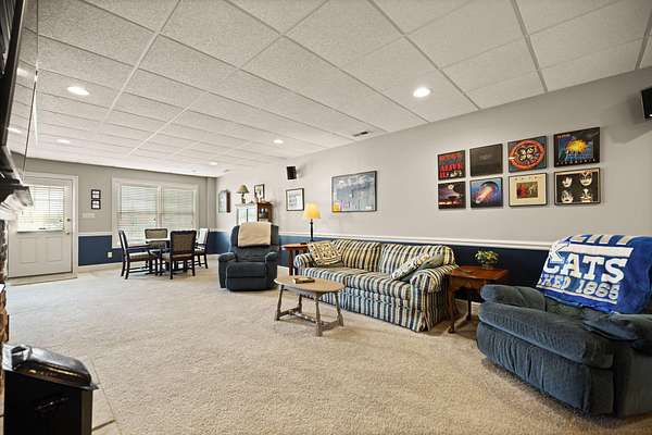 - Concrete, Exterior Entry, Full, Interior Entry, Partially Finished, Walk-Out Access