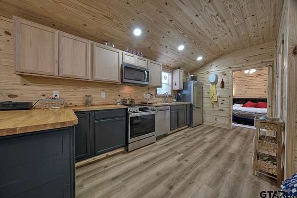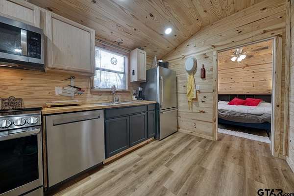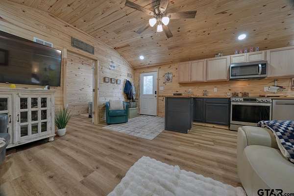 Discover peaceful country living on 2.369 acres in Van ISD, offering the perfect blend of privacy, nature, and functionality. This charming 1-bedroom, 1-bath home also includes dedicated office space, ideal for working from home, hobbies, or accommodating guests. Thoughtfully designed, the interior feels cozy yet efficient, making great use of every square foot while maintaining comfort and charm. Step outside and enjoy the expansive back deck, perfect for relaxing mornings, outdoor dining, or entertaining while taking in the serene surroundings. The property features a picturesque creek, adding natural beauty, tranquility, and a unique outdoor element that enhances the land's appeal. With plenty of space to roam, garden, or expand, this acreage offers endless possibilities for enjoying the outdoors. Spray foam insulation and built on pier and beam, ream tankless water heater and more! Located in the desirable Van Independent School District, this property provides a quiet rural setting while remaining convenient to nearby towns for shopping, dining, and everyday necessities. Whether you're seeking a weekend retreat, a full-time residence, or a private escape surrounded by nature, this property delivers a rare opportunity to enjoy simple living with room to grow. The land offers a gentle mix of open areas and mature trees, providing both usable space and shaded retreats. The creek enhances the property's character and creates a calming backdrop for daily living. It is possible to create a pond on the property as well. This setting is ideal for those who appreciate wildlife, privacy, and a slower pace, while still valuing accessibility. With its manageable home layout and generous acreage, this property is well suited for downsizing, a first-time buyer, or anyone looking to invest in land with lifestyle appeal and room to enjoy nature daily. Enjoy quiet evenings, open skies, and the freedom that comes with owning acreage in a peaceful setting. A special find.