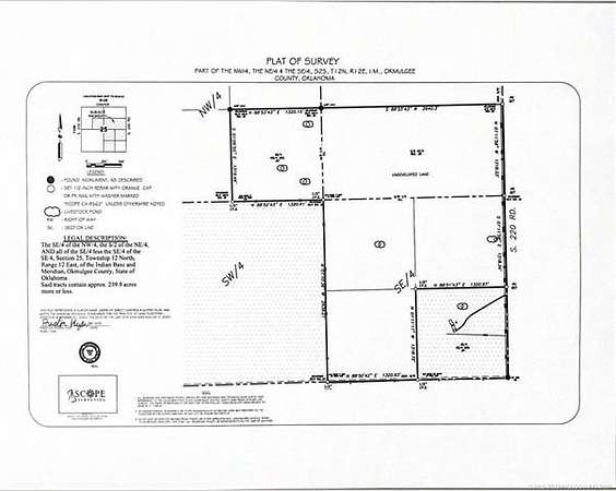 The SE/4 of the NW/4, the S/2 of the NE/4, AND all of the SE/4 less the SE/4 of the SE/4, Section 25, Township 12 North, Range 12 East, of the Indian Base and Meridian, Okmulgee County, State of Oklahoma