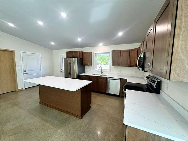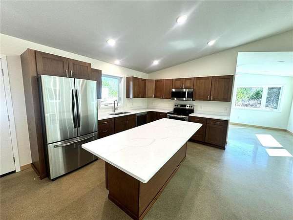 Welcome to your dream home in Nevis! This stunning 3-bedroom, 3-bathroom residence offers over 1900 sq ft of exquisite living space, complete with elegant quartz countertops and modern stainless steel appliances. Enjoy the spacious open-concept kitchen and relax in the inviting sunroom, while the in-floor heating keeps you cozy year-round. With a convenient slab-on-grade foundation and an attached heated and insulated two-car garage, this home perfectly combines comfort and functionality. All of this is set on a beautifully wooded 4-acre lot, providing the perfect retreat. Plus, you're just minutes away from downtown Nevis, Park Rapids, the Heartland Trail, Paul Bunyan State Forest, and thrilling ATV trails, not to mention some of the finest fishing lakes in the North Country. Don’t miss out on this incredible opportunity!