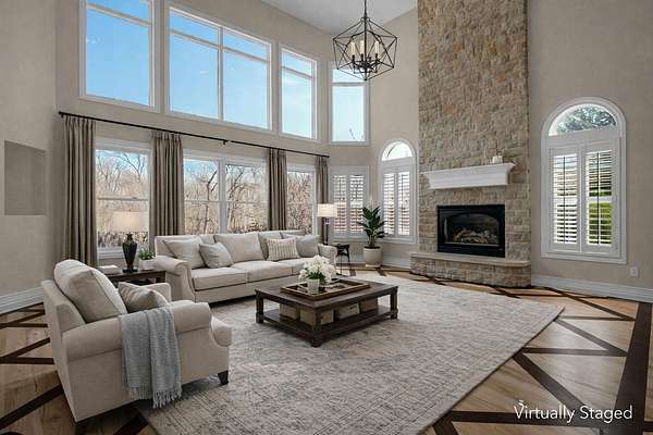 Tucked at the end of a quiet cul-de-sac inside Powell's coveted gated Deseret community sits a property that almost never comes available--a private, wooded 1.94-acre estate with a ravine, stream, and resort-style pool that turns every day into a getaway. Set on two parcels totaling 1.94 acres, this custom home offers 6,200+ sqft of living space, perfectly designed for both everyday comfort and unforgettable entertaining. Mature trees, rolling terrain, and a scenic ravine create a setting that feels miles away--yet you're minutes from everything. Inside, the home delivers a flexible, highly functional layout with refined architectural touches throughout. A vaulted great room with a floor-to-ceiling stone fireplace and expansive windows frames breathtaking views of the wooded rear yard. The large kitchen flows seamlessly into gathering spaces, while a four-season sunroom invites year-round enjoyment of the natural surroundings. Upstairs, all four spacious bedrooms feature private en-suite baths, including an oversized owner's retreat with sitting area, walk-in closet, and large bath. The walk-out lower level is an entertainer's dream--complete with a media area, recreation space, wet bar, full bath, and room for fitness, hobbies, or guests. Outside A 50-foot saltwater pool with diving depth, expansive paver patios, and professionally enhanced landscaping transform the backyard into a private resort. The wooded ravine and stream have been thoughtfully improved, creating a rare blend of natural beauty and usable outdoor space. Behind the scenes? The heavy lifting has already been done. (Request Agent to Agent Notes for a list of Extensive updates) Located in the Olentangy School District and within a private gated community with HOA-managed irrigation and snow removal, this home offers both exclusivity and convenience. If you've been waiting for a property with land, privacy, updates, and true lifestyle appeal inside Powell, This is the one!