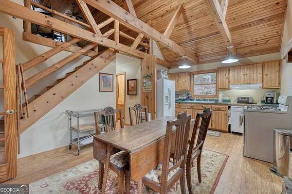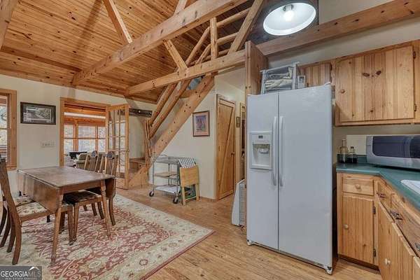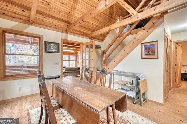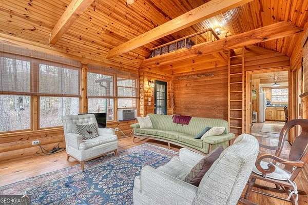 Experience Mountain Living with Endless Possibilities! Tucked away in the breathtaking North Georgia Mountains, this hidden gem offers a rare opportunity to own a private 4.8-acre sanctuary featuring THREE distinct cabins, a sparkling pond, a gentle stream, and dramatic rock outcroppings surrounded by lush forest. Whether you envision a family compound, a mountain retreat center, or a vacation rental community, this property provides the perfect blend of serenity, seclusion, and accessibility-just minutes from Lake Burton and the Tallulah River The Main Cabin welcomes you with rustic elegance-tongue-and-groove ceilings, rich pine floors, handcrafted doors, and a striking stone fireplace create a warm and inviting atmosphere. The 2-bedroom, 2-bath layout with loft offers space for guests, creative retreats, or family gatherings, while large windows frame peaceful woodland views. Two Additional Guest Cabins echo the same mountain charm. Each features 2 bedrooms and 1 bath, with thoughtful details that make them truly special-one with an impressive stone fireplace built from rock quarried on-site, and the other with a cozy woodstove that radiates comfort and nostalgia. Outside, nature takes center stage. Relax beside the tranquil pond, listen to the sounds of the creek, or wander through your private woodland trails. This property is a haven for writers, artists, families, and anyone seeking a slower rhythm connected to nature. Ideally situated less than a mile from the Tallulah River and Lake Burton's boat launch and just 5 miles to Anchorage Marina, you'll enjoy effortless access to boating, fishing, and hiking adventures-including the famed Appalachian Trail only minutes away. The vibrant mountain town of Clayton is nearby, offering local shops, farm-to-table dining, and wineries to explore. Create your own legacy property in the North Georgia Mountains-where family, nature, and community come together.