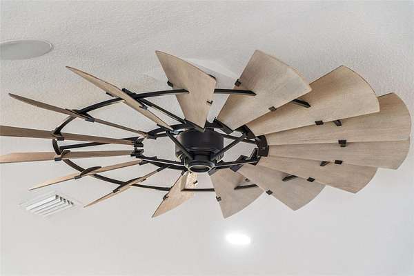 - Ceiling Fans(s), Eat-In Kitchen, High Ceilings, Kitchen/Family Room Combo, Living Room/Dining Room Combo, Open Floorplan, Primary Bedroom Main Floor, Solid Wood Cabinets, Split Bedroom, Stone Counters, Thermostat, Walk-In Closet(s), Window Treatments