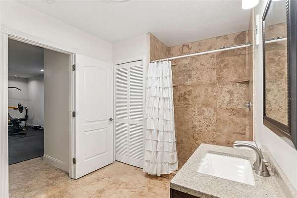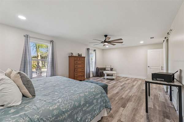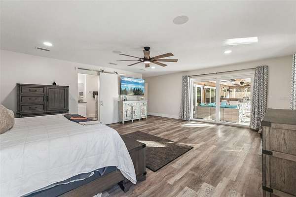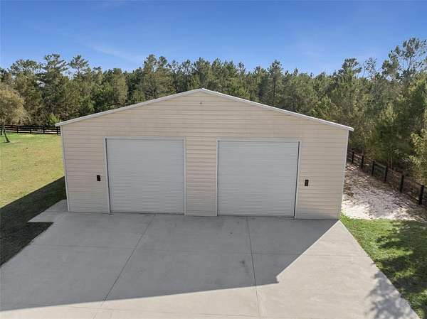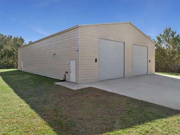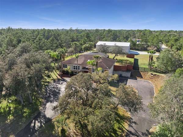 Privately set on 2.77 acres minutes from New Smyrna Beach, this coastal-modern estate delivers refined living, resort-style outdoor space, and a 4000 sqft RV utility Garage rarely found this close to the shore. Offering 4 Bedrooms and 4 Full Bathrooms with expansive living areas filled with natural light. The Custom Kitchen anchors the home with Quartz Countertops, Soft-close Cabinetry, high-end appliances, Dacor Oversized Refrigerator, Fulgor Milano Induction Cooktop Stove/Oven, a Built-in Wine and Bourbon Bar--designed for both form and function. Luxury Vinyl flooring, Recess Lighting, Integrated Sonos Surround Sound throughout offering seamless, app-controlled audio with individual room zones, Newer Windows and Sliding Glass Doors. Spacious Primary Bedroom, an en-suite Bathroom features 2 rain shower shower heads and Walk in Closet. Secondary Bedroom is large and offers an en-suite fully remodeled Bathroom. Lower level features a large sitting room, two bedrooms, a full bathroom ideal for an In-Law Suite, Indoor Laundry and an Oversized Garage. Escape outside to your very own spacious Screened Lanai and Heated Saltwater Pool, surrounded by pavers and an outdoor bar creating a private, resort-style setting perfect for year-round enjoyment. And if that wasn't enough this home features approximately 4,000 sq ft double-bay RV garage which elevates this estate to another level. Fully Insulated and Wired, it features TWO 14x14 RV automatic doors, separate Septic System, Outdoor RV pump-out, dual 50-amp hookups, 9,000-lb car lift, alarm system, and plumbing in place for a full bathroom--ideal for luxury vehicles, boats, RVs, collections, or future garage conversion. Beyond the home, the property is fully fenced with electric gated entry, custom landscape lighting, irrigation, city water, and dual well systems. This truly is one of a kind.