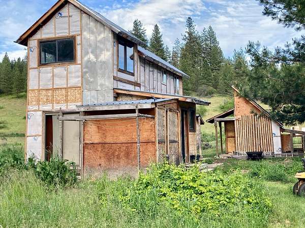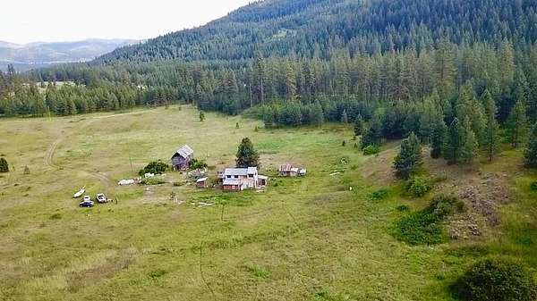 Historic Rustic Retreat! Discover peace & tranquility on your own 12.9-acre MOL property, just 7 miles from Inchelium. Once part of the early 1900s thriving community of Covata, this unique property holds the unrestored original store, PO, & hotel--offering a glimpse into the area's past. (Don't enter the dilapidated building.)All structures unpermitted & incomplete, & SF is estimated. The largest building currently serves as an artist's workshop & sleeping area, with a composting toilet & water pumped via generator (not incl). Also includes a chicken coop & shed. Enjoy walking access to beautiful Bourgeau Lake, a pristine, stocked lake open to Tribal Permit members. The property is fee simple but located on the Reservation. Area has mining claims so bring your pick & pan.