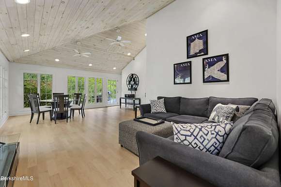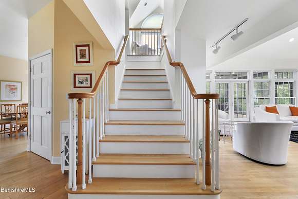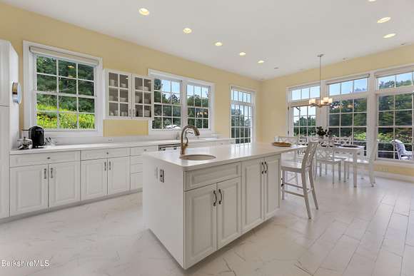 A luxurious home on one of the most scenic roads in The Berkshires, surrounded by 15 pastoral acres, with picturesque mountain views. Enter a sun-drenched living room with a soaring cathedral ceiling and an elegant fireplace centerpiece. Enjoy an expansive 3-season porch, with panoramic windows and classic mahogany floors. A recently updated eat-in kitchen features Sub Zero appliances and a beautiful butler's pantry. Relax in the newly renovated family room with wall-to-wall casement windows. This 5 bedroom home offers a bonus game room and home office equipped with fiber internet and a spacious private master bedroom with ensuite bath. An additional wing features a separate guest suite with living room, kitchen, dining area, full bathroom and 2 bedrooms. In Alford, renowned for low taxes. Maureen White-Kirkby maureen@barnbrookrealty.com 413-446-5634 BERKSHIRE HATHAWAY HOMESERVICES BARNBROOK REALTY