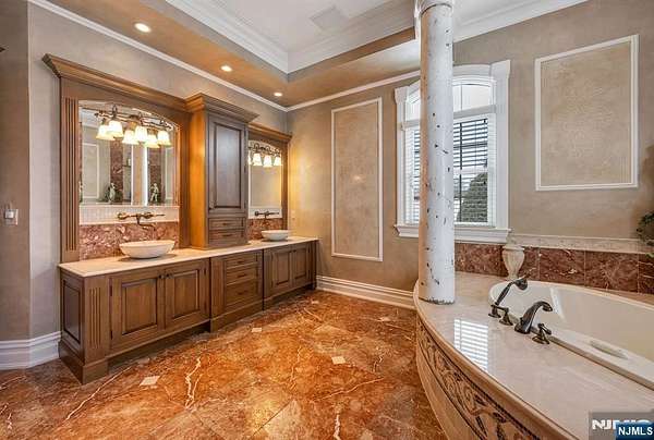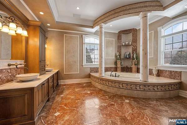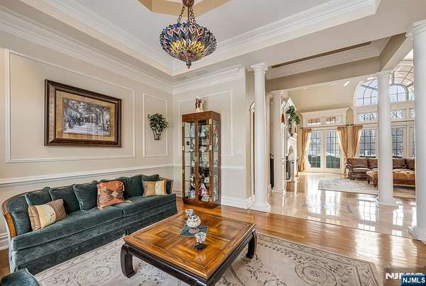 Set down a long private driveway on 6.81 acres, this luxury estate offers privacy and convenience near shopping, dining, and major travel routes. Featuring 5 bedrooms and 7 full and 1 half bathrooms, the open-concept layout showcases 24-foot ceilings, floor-to-ceiling windows, and a marble gas fireplace. The gourmet eat-in kitchen includes a large center island, Clive Christian-inspired cabinetry, granite countertops, high-end appliances, and a butler’s pantry with a wine fridge. The private primary suite offers a fireplace, sitting area, spa-style bath, and custom walk-in closet. Additional highlights include multiple en suite bedrooms, home theater, wine tasting room, custom bar, gym, 2,800+ sq ft storage, and an oversized 4-car garage. Resort-style outdoor living features 4,000+ sq ft of patio space, Pebble Tec pool, spa, fire bowls, and covered entertaining areas.