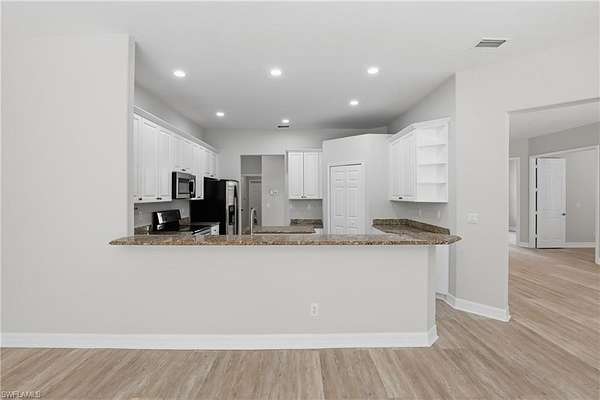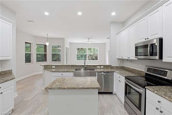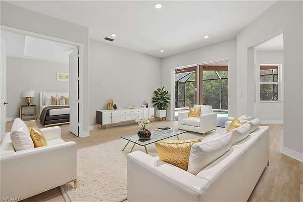 One or more photo(s) has been virtually staged, AI generated or rendered. Welcome to 2480 52nd Ave NE in Naples-where comfort, space, and style come together in this amazing Southwest Florida pool home set on 2.73 private acres. This expansive residence offers 4 bedrooms, 3 full bathrooms, a dedicated den or office, formal dining and living rooms, a spacious family room and a cozy breakfast nook. The well-designed kitchen features stainless steel appliances, granite countertops, a center island, a walk-in pantry, and a built-in desk, making it perfect for both everyday living and entertaining. A laundry room and 3-car garage add to the home's functional layout. Recently refreshed from top to bottom, this move-in ready home showcases a bright, modern feel with freshly painted interior and exterior, brand-new Lifeproof luxury vinyl plank flooring throughout, updated bathroom vanities, lighting, and mirrors, and beautifully refinished kitchen cabinets-just to name a few updates. The generous primary suite offers two separate walk-in closets and a spacious en-suite bath complete with dual vanities, a soaking garden tub, and a separate shower. Step outside to enjoy your private pool and lanai, with convenient access from the family room, living room, and primary bedroom-perfect for seamless indoor-outdoor living. With abundant space for both everyday living and entertaining, this home has it all. The property also features an upgraded keystone paver driveway leading to the garage area, plus an additional parking area ideal for extra vehicles or visitors.
