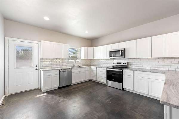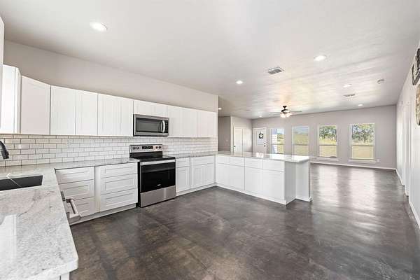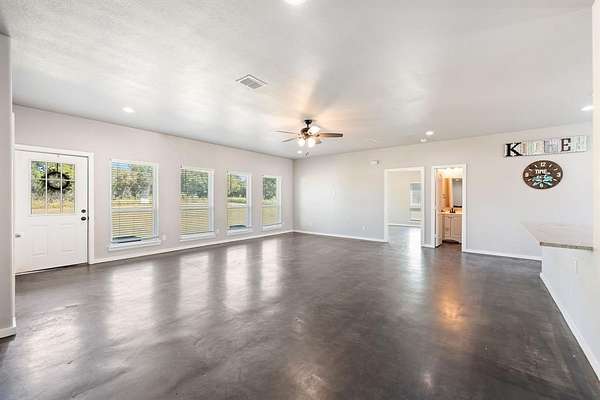 Experience the best of easy country living in this practically new modern farmhouse set on 2 beautiful acres under a durable metal roof. This thoughtfully designed home combines charm and functionality with a 30x40 spray foam-insulated workshop--perfect for projects, storage, or a home-based business. You'll also find a 30,000-gallon Pioneer Water Tank with premium filtration for pure, reliable water year-round. Inside, the open-concept floor plan showcases stained concrete floors for easy maintenance and a spacious kitchen with granite countertops, soft-close cabinetry, and a large walk-in pantry. The primary suite features a massive 10x13 closet, while three secondary bedrooms offer plenty of space for family or guests.
