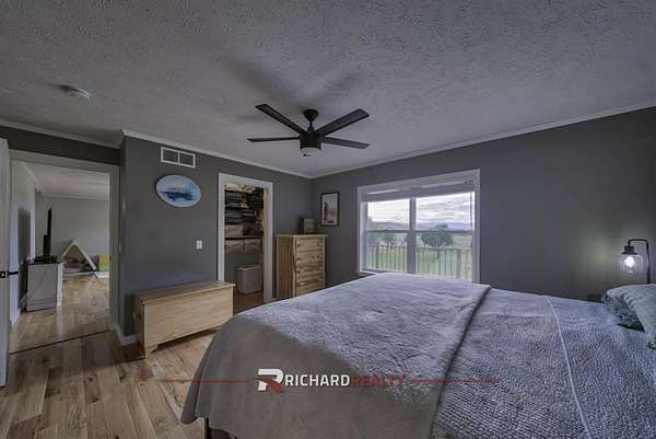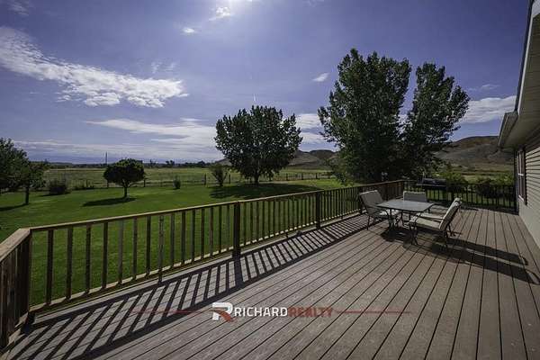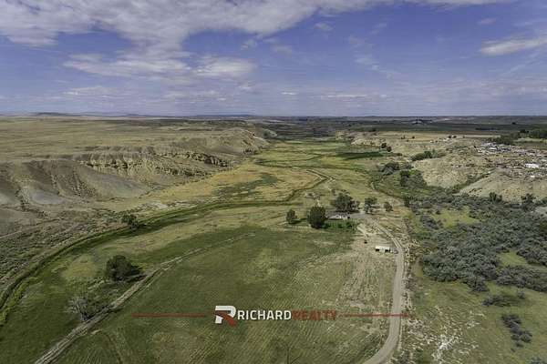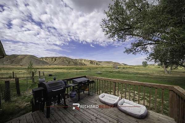 This unique property offers approximately 110 acres of space, privacy, and stunning views. The home features 3 bedrooms and 2 bathrooms on the main level. The finished basement includes egress windows and 3 bonus rooms--two could be converted to bedrooms--plus a 3rd bathroom. There's ample storage, including long-term storage with both interior and walk-out access. Take in mountain views from the front and back decks. The setting is peaceful and scenic, with frequent wildlife sightings and direct access to BLM land for recreation. Pasture Creek runs year-round through the property, adding to its agricultural value. Bring your horses, goats, or other animals--this property is set up for a ranching or hobby farm lifestyle, featuring a pivot irrigation system, fruit trees, and a chicken coop. There's plenty of open space for grazing, gardens, or future expansion. Access is available via a main private lane off US HWY 14/16/20 and a second road easement off Cemetery Road. Potential for agricultural classification--buyer to verify with county assessor.