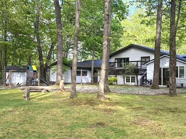Step into this beautifully maintained 4-bedroom, 2-bath retreat on nearly 3 acres in a gated community with security. The home features a new metal roof, granite countertops, oak kitchen cabinets, new bathroom fixtures, and new flooring throughout. The lower level offers a conforming 5th bedroom option, perfect for guests, a home office, or extra living space. Enjoy a spray-foam insulated 2-car garage with a 15x15 workshop, plus a 14x14 cabin wired for a hot tub and a 10x10 storage shed -- ideal for hobbies, entertaining, or relaxation. The property grants exclusive access to the White Birch Recreational Association's amenities, including a clubhouse, saunas, heated indoor pool, tennis courts, and four fishing lakes -- ideal for outdoor fun and year-round enjoyment. Recent updates include freshly painted interior (2025) and newly painted exterior trim, fascia, and gutters (2025), giving the home a bright, move-in ready feel. Don't miss this rare opportunity to own a spacious, upgraded home in one of Farwell's most sought-after communities!