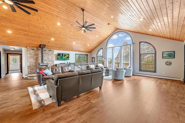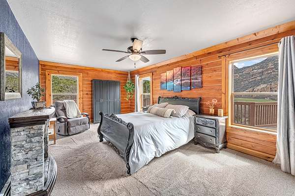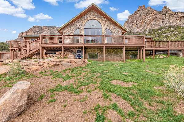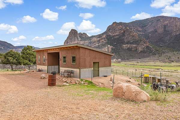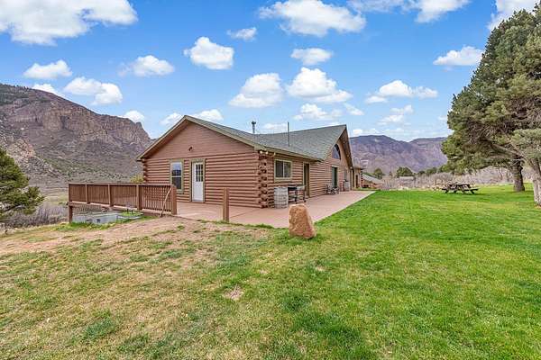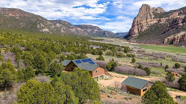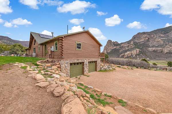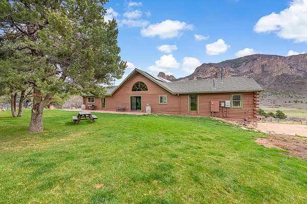 Enjoy the best of both worlds. This beautiful custom log home with views of historic Driggs Mansion and Thimble Rock sits on just under 23 acres, has 360-degree views, and backs to BLM and Trophy unit 40. It's only 35 minutes from Grand Junction. This home features almost 4000 sqft with 5 bedrooms, 3 baths, 2 living spaces, theater room with wet bar and mini kitchen, a 4-car garage, and outbuildings. Experience the feel of luxury in the living space with warmth from the woodstock soapstone woodburning stove and the expansive windows. The kitchen features leathered granite and an island with a gas range. Owned solar, a well, and a commercial grade heating and cooling pump make the home so efficient. Deeded water rights to Thimble Rock Spring and a pond are a bonus. The property is being sold furnished! A list of Inclusions is available. Take a look at Colorado living at its finest.