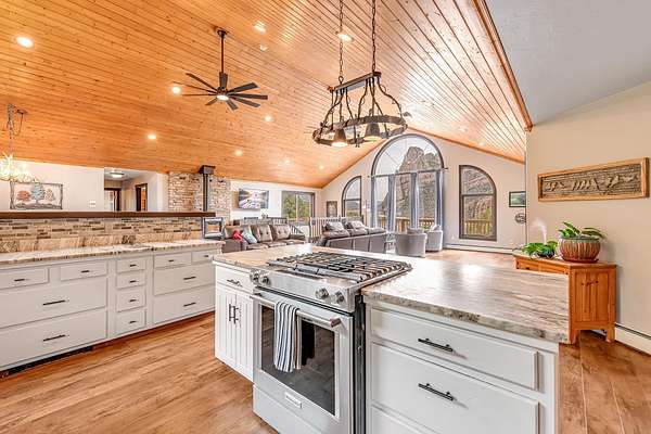 - Ceiling Fans, Granite Counters, Main Level Primary, Pantry, Separate Formal Dining Room, Vaulted Ceilings, Walk In Closets, Wet Bar, Window Treatments
