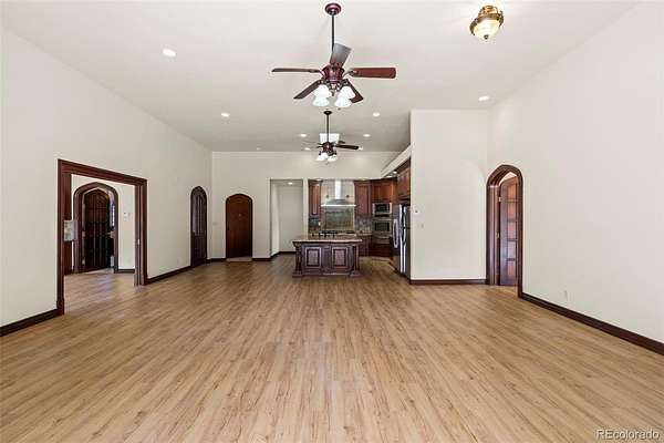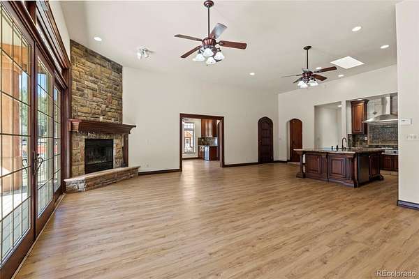 - Built-In Features, Ceiling Fan(s), Five Piece Bath, High Ceilings, Kitchen Island, Open Floorplan, Primary Suite, Stone Counters, Walk-In Closet(s), Wet Bar