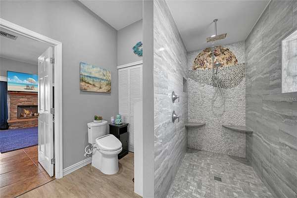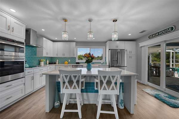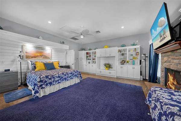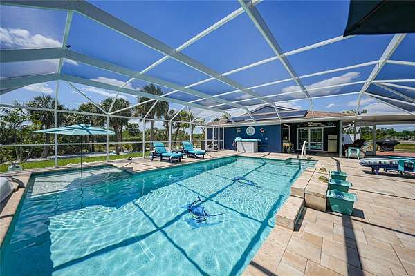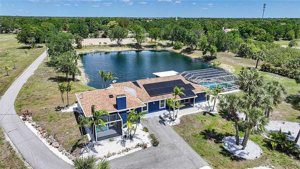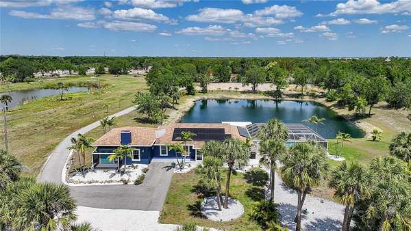 5 acres plus is what this private pool home sits on. This gorgeous home has been completely remodeled all the way down to the studs. Even the septic has been updated. This home also features Hurricane windows and is located in an area where flood insurance is not mandatory as this home has not flooded. There are also solar powered panels that can be turned on with a switch in case you lose power. As you enter the property through the gate you have a nice drive to the home that sits in the back of the property with lovely views of the large pond. You wil LOVE cooking in this kitchen as it comes with all of the appliances, gorgeous quartz countertops, an island, white cabinets, beautiful back splash, large farm style sink and views of the pool & the water. The lay out is also perfect in this home as it has an open floor plan that features 2 master suites and a third guest bedroom or office. There is also a nice size laundry room with plenty of ample space for all of your laundry needs. The main bedroom is huge with its own wood burning fireplace, built in shelves, walk in closet and a lovely En Suite. While the inside of this home is stunning, most of your time will be spent outside around this huge heated saltwater pool that is 30x15. This pool has a large enclosed lanai area that is 35x55 with brick pavers, plenty of room for chairs & loungers and also views of the pond. There is even an outdoor shower. This home is truly one of a kind that has been immpecably kept! Make your appointment today! you wont be dissapointed. Be sure to see the 3D tour and youtube video attached to this listing.