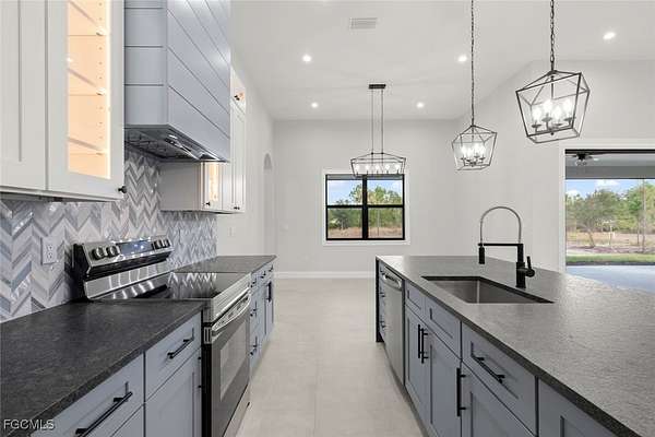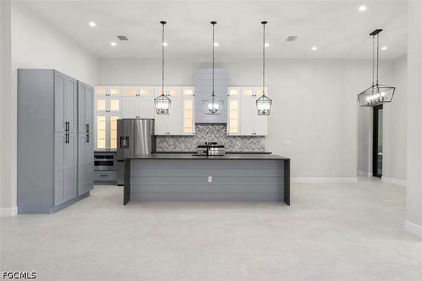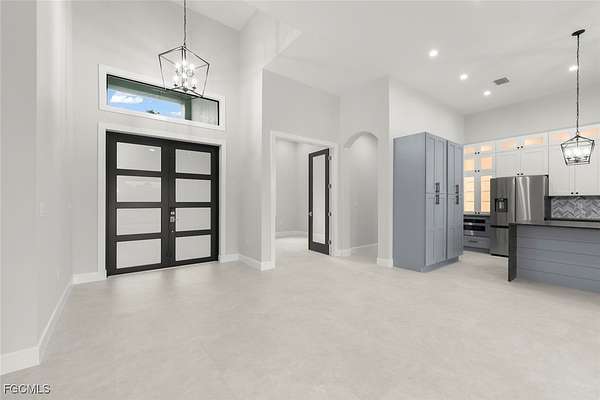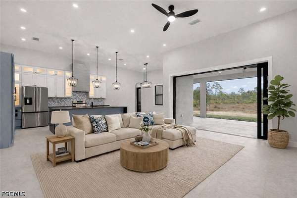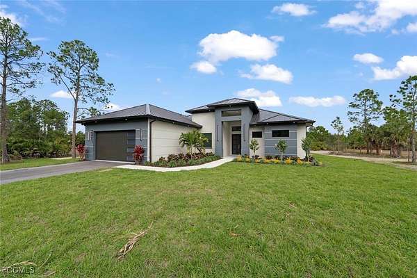 Buyer cancelled contract before inspection and escrow. Welcome to your future dream home in the estates! Now completed and ready for your family! This Stunning Wellington model is thoughtfully situated on a 100% upland 2.73-acre parcel, offering privacy, space, and endless potential to create your ideal Florida lifestyle. With 3,767 total square feet and 2,416 square feet under air, this custom-designed residence combines open-concept living with timeless architectural details. As you step into the grand entryway, you'll be welcomed by soaring 16-foot ceilings, an airy and spacious layout, and high-end finishes that are being carefully crafted with attention to detail. At the heart of the home, a chef-inspired kitchen-featuring solid wood cabinetry, a large center island, dual pantry cabinets, and a custom backsplash, all designed to seamlessly flow into the main living area for easy entertaining. Pocketing sliding glass doors create a 12-foot-wide opening that connects the interior living space to the under-truss lanai, offering an effortless blend of indoor-outdoor living. The outdoor area is complete with a summer kitchen which is part of the planned design and picture window lanai screening offers unobstructed views to the rear yard. Direct access from the outdoor area to the third full bathroom, this space is perfectly positioned to serve as a future pool bath once your outdoor oasis is complete. The primary suite will be a luxurious retreat with an 11-foot tray ceiling, dual walk-in closets with wood shelving, and large windows overlooking the backyard. The en-suite bathroom will feature a 9-foot dual-sink vanity, freestanding soaking tub, and a spacious walk-in shower. Three additional guest bedrooms, each with 10-foot ceilings, provide comfort and space for family or visitors. Thoughtfully designed for durability and efficiency, the home includes impact doors and windows, a metal roof, whole-house reverse osmosis system, two-zone A/C, generator-ready water setup with gravity-fed septic, and a Taexx pest control system with termite baiting. The oversized garage is finished with epoxy coated floors and upgraded impact modern style 3-layer insulated garage door. Let your imagination run wild with the land that offers plenty of room for a future pool, detached structures, gardens, horses...this one-of-a-kind estate offers endless possibilities for customization and expansion. Be sure to check out the virtual tours!