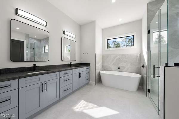 - Bathtub, Bedroom On Main Level, Breakfast Area, Breakfast Bar, Built In Features, Dual Sinks, Family Dining Room, High Ceilings, Kitchen Island, Living Dining Room, Main Level Primary, Pantry, Separate Shower, Split Bedrooms, Walk In Closets