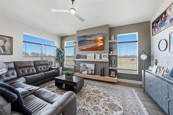 If you've been looking for something that feels upgraded, intentional, and still gives you space to breathe... this is it. This fully renovated three bedroom, two bathroom home was built in 2016 and sits on 4.78 acres of usable land, zoned for farm animals and complete with a pond. It's private, it's peaceful, and it's the kind of property that gives you options. Inside, every detail has been elevated. You'll notice the custom wood accents and archways right away. They add warmth and character without feeling overdone. The kitchen is a standout with two-tone cabinetry, floating shelves, and a layout that actually works. Tucked just behind it is a full butler's pantry with a second sink, second refrigerator, and serious storage. It keeps the main kitchen clean and functional while giving you space to prep, host, or just spread out. Two of the bedrooms feature oversized walk-in closets that feel more like dressing rooms. The bathrooms are finished with high-end tile work and clean, modern design that feels fresh and timeless. There's also a dedicated laundry and utility room, because practical spaces matter too. One of my favorite features is the bonus room. It's large enough to be a fourth bedroom, office, home gym, media room, hobby space, whatever you need it to be. It gives this home flexibility that a lot of properties just don't have. Outside, you've got nearly five acres to enjoy. Zoned for farm animals, so bring the horses, chickens, or start that garden you've been talking about. The pond adds charm and makes the whole property feel established and peaceful. A detached two-car garage gives you extra storage and workspace, separate from the main house. This is one of those properties that feels put together. The finishes are high-end. The land is usable. The layout makes sense. And you get the rare combination of luxury inside and freedom outside. It's polished without being fussy. Private without being remote. And ready for someone who wants space without sacrificing style.