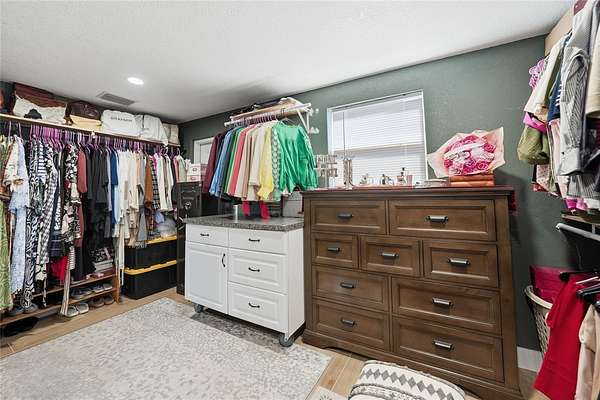 - Built-In Features, Ceiling Fans(s), Eat-In Kitchen, Open Floorplan, Primary Bedroom Main Floor, Solid Surface Counters, Thermostat, Walk-In Closet(s), Window Treatments