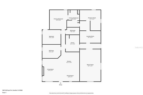 - Bathroom x 2, Bedroom x 3, Bonus Room, Dining Room, Kitchen, Living Room