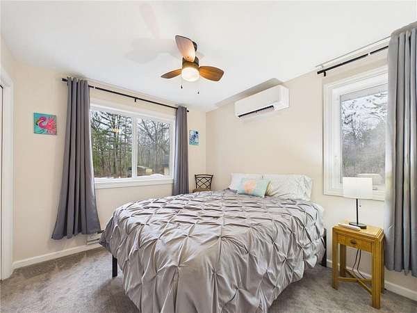 Newer construction on Clam Lake offering easy, low-maintenance lake living without the typical upkeep. Built in 2024, this 2 bed, 1 bath cabin sits on 2.06 acres of shared common land with approx. 250’ of shared frontage featuring a mix of sand and gradual elevation for easy access to the water, while the bright, open one-level layout includes a spacious kitchen, eat-in dining, and comfortable living area. Multiple ductless mini-split units provide efficient heating and cooling, and the slab foundation with metal roof keeps maintenance simple. A covered front porch and patio offer a great spot to unwind and take in the lake setting, with a storage shed included. Part of Ponderosa Resort Condominium with shared dock, beach access, and lawn care included, making this a solid option for a weekend escape or turnkey up north retreat.