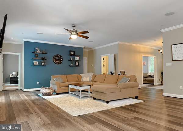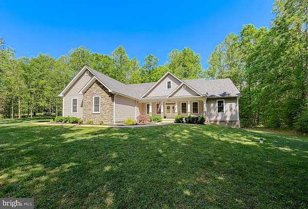 Tucked away on a private road, this secluded rambler offers the best of Southern Maryland country living on 5 wooded acres. With just under 3,000 sq ft of single-level living, this home features an open-concept layout connecting the kitchen, dining, and family room-ideal for everyday living and entertaining. The kitchen includes a large island, ample cabinetry, and flows seamlessly into the main living space. Offering 4 bedrooms and 2 full baths, the layout provides flexibility for guests, home office, or growing needs. Enjoy peaceful mornings on the covered front porch or relax on the rear deck overlooking mature trees and a private setting. The unfinished basement provides endless potential for additional living space, recreation, or storage. A 2-car garage adds convenience. If you're looking for privacy, usable land, and a move-in ready home with room to grow, this property delivers.