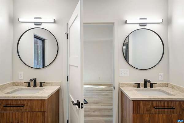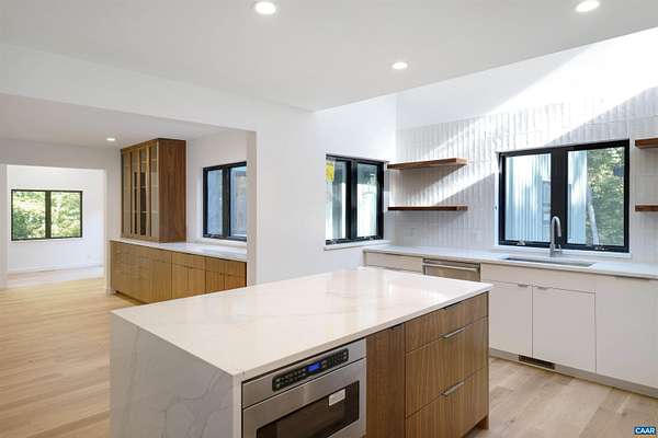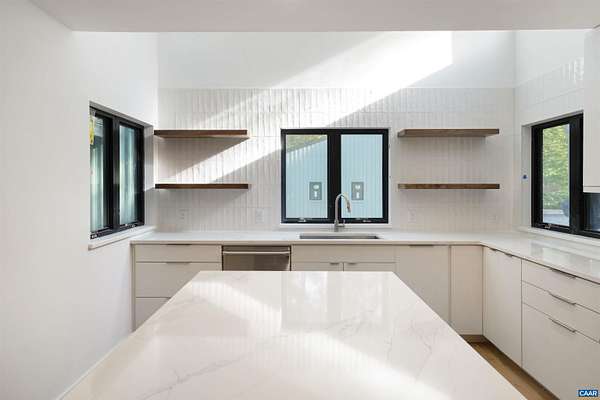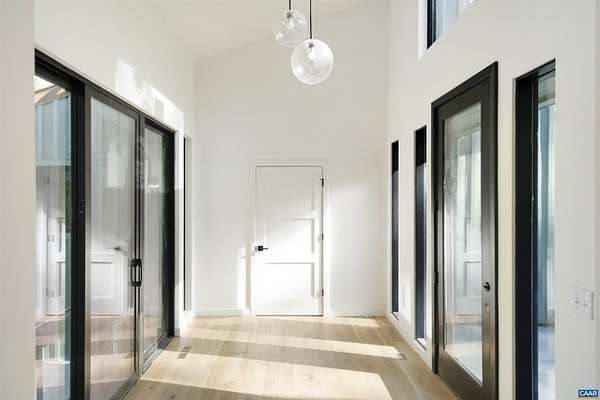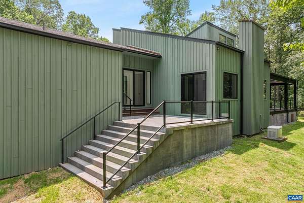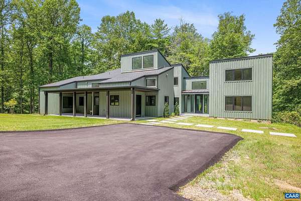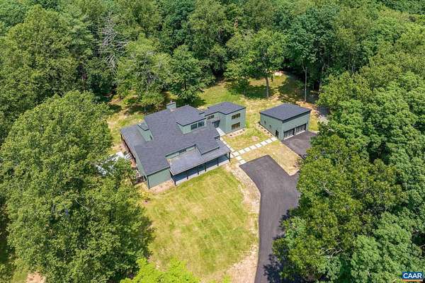 This property has undergone flawless upgrades, elevating a well-built architectural gem to a supreme level of style, comfort, and quality. Offering 5 bedrooms and soaring interior spaces, the home features two first-level primary suites, including a private guest suite. The second level includes three additional bedrooms and two baths (one en-suite), along with multiple flexible spaces ideal for creative pursuits, offices, or studios. Designed for seamless indoor-outdoor living, enjoy coffee, cocktails, or dining on four porches, including a large covered wraparound porch. The stunning new kitchen showcases premium custom cabinetry and Viking appliances, flowing effortlessly into the open great room, cozy family room, wet bar, and outdoor entertaining areas. The great room's striking fireplace anchors the space, complemented by a second fireplace in the inviting family room. The primary suite, great room, and family room all open directly to the covered porch. A separate yet connected guest primary suite linked via a glass walkway offers exceptional privacy and includes a second-floor office or workout space. Located on 11+ acres off Garth Road surrounded by conservation land, gives it rare privacy and blue ridge view opportunity.