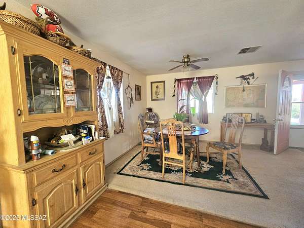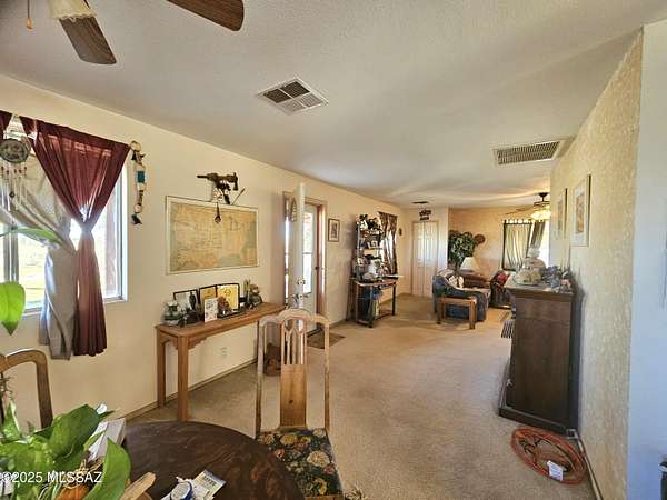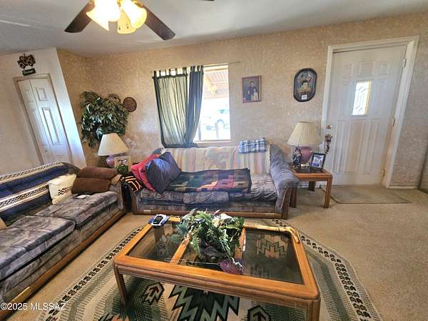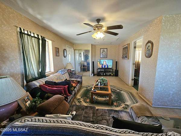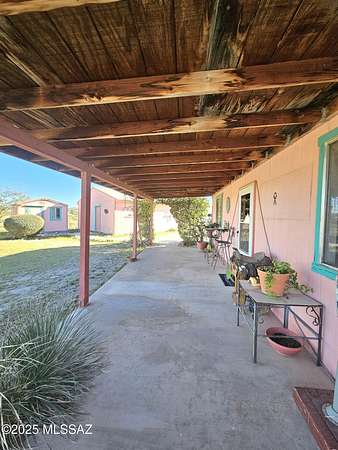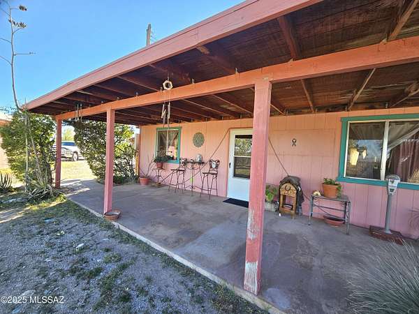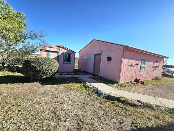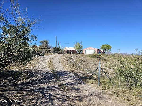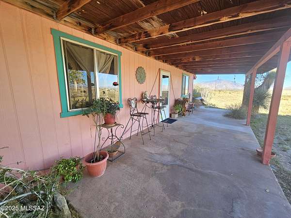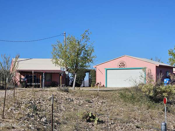 Come home to spectacular views every day! Quiet, country living, yet easy access to I-10 for commuting. On a paved road. This 2 bed/1 bath home sits high on a hillside 5 acre lot that is fully fenced. Zoned for horses. Private well. This home has been well maintained & lightly lived in. AC unit w/ a 15 year warranty has been installed in 2025. Roof has new membrane, primer & paint. Well pump has just been replaced & well system has been routinely maintained. Detached 2 Car Garage, Storage Unit, Concrete Pathways, Covered porch. Fully furnished & ready to move-in! Great opportunity for a turn-key property where fabulous mountain views surround you. Bring the horses or other animals & relax on the porch to take in the nature that surrounds you! Come see this one today!