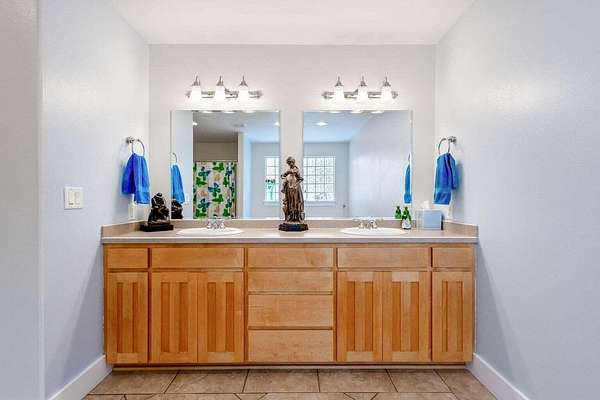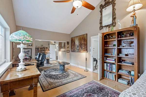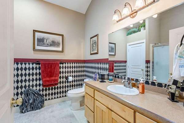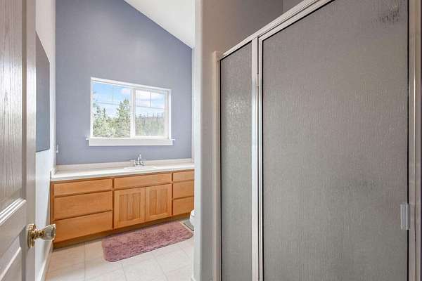- Breakfast Bar, Built-In Features, Ceiling Fan(s), Double Vanity, Enclosed Toilet(s), Fiberglass Stall Shower, High Speed Internet, Kitchen Island, Laminate Counters, Open Floorplan, Pantry, Primary Downstairs, Shower/Tub Combo, Soaking Tub, Tile Counters, Walk-In Closet(s)