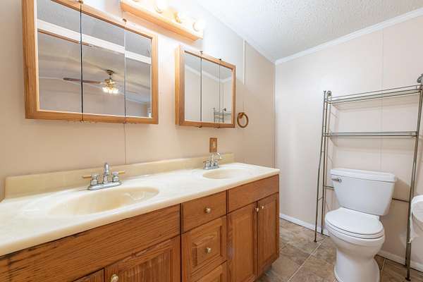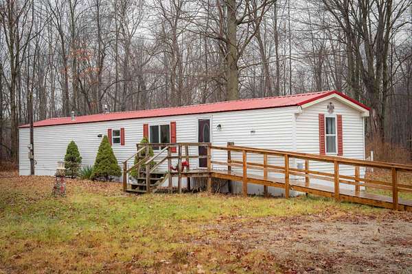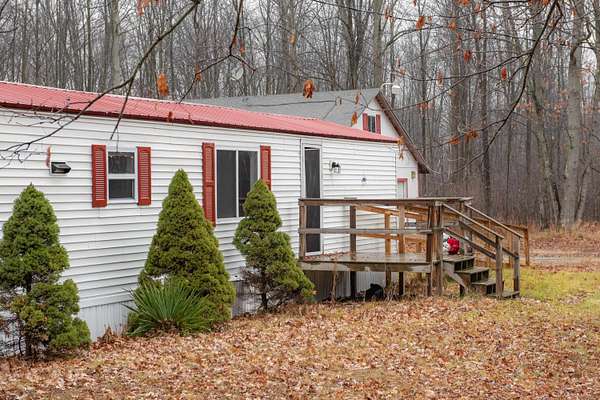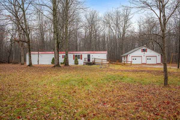 Tucked quietly off the road on 3 wooded acres, this home offers comfort, privacy, and room to spread out. The home includes 2 bedrooms, 2 full bathrooms, and 980 square feet of easy living in the Bullock Creek School District. Nice back porch with a private view, nice for outdoor entertaining. The floor plan features a true primary suite with jack-and-jill sinks and a full bath, plus a dedicated laundry room for added convenience. Propane, well, and septic utilities keep operating costs manageable. A standout feature here is the 2.5-car garage with a loft above -- perfect for storage, hobbies, or future workspace. The property's setting provides a peaceful buffer from traffic and neighbors while still being an easy drive to town. If you're looking for an affordable home with acreage, a large garage, and a private setting, this one is ready for its next owner. If financing, please make sure lender verifies ability to finance singlewide manufactured homes. Property holds affidavit of affixture, and title work is already complete. Call your favorite agent today for a showing!