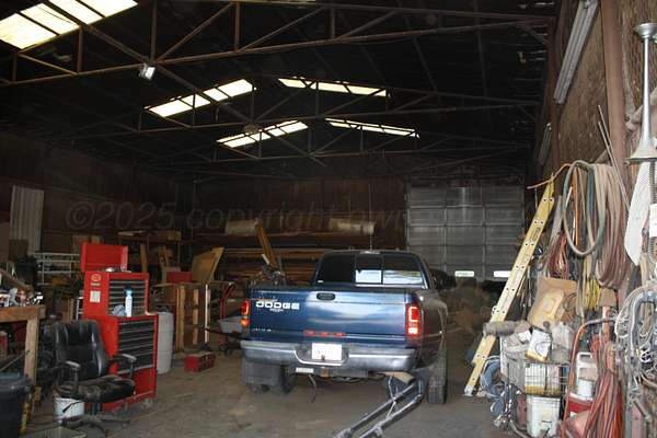 8.93 Acres with about 620ft of highway frontage that sits right on the exit ramp. Makes a great spot to open any business you want. The owner drove a semi and worked on them in his big shop (2400sqft) with tall rollup doors on the front and back! The property also fronts Potter Rd to the North so land could be divided up for other residential lots. Great place for storage bldgs, warehouse, truck stop, store, auto repair or whatever you can think of that needs hwy access. The house is a 4-2-2 with a basement and another 2 car detached garage to the West of house. Mobile home does not stay. Roof is metal deco about 5yr old per seller. Property is being sold As-Is.