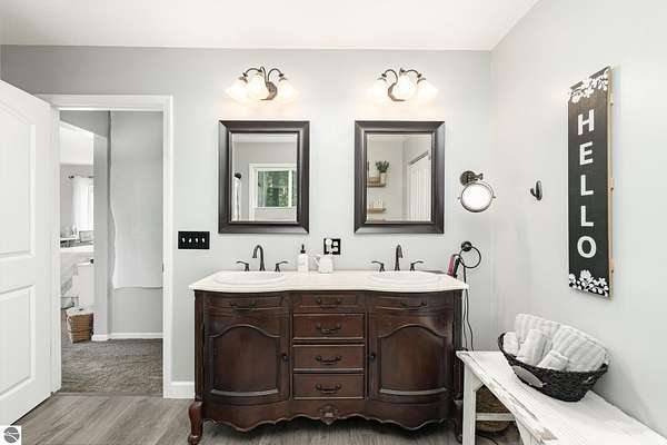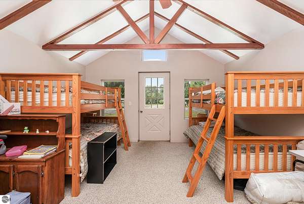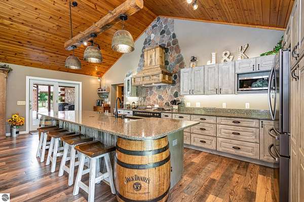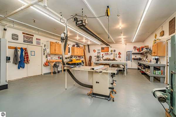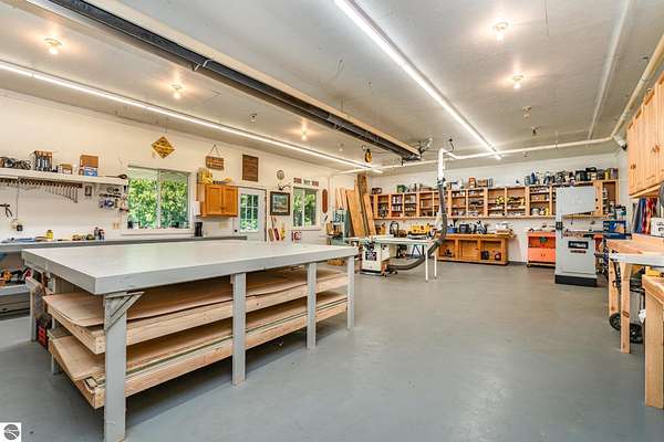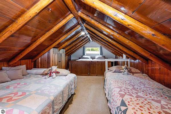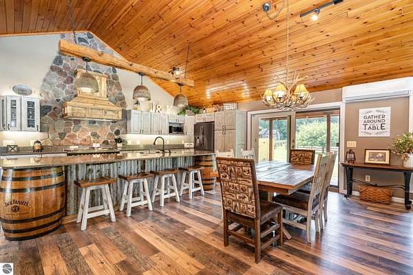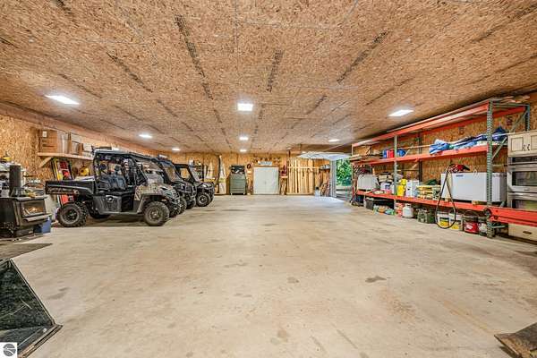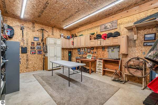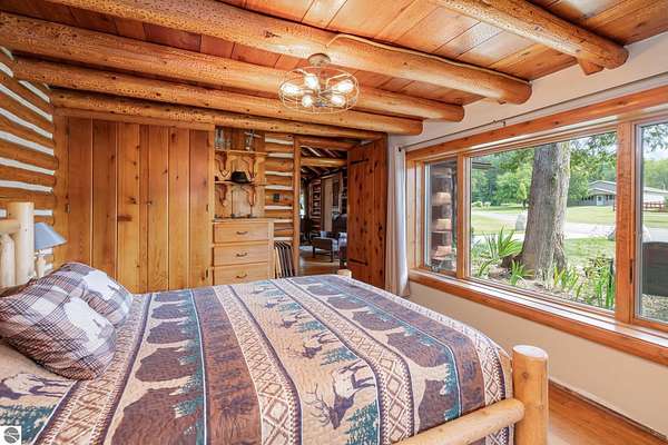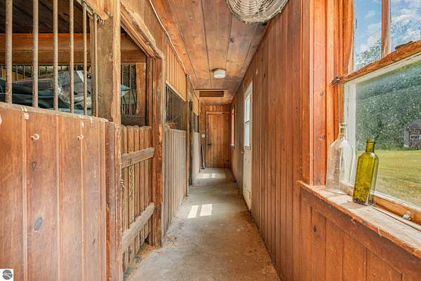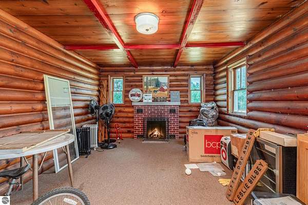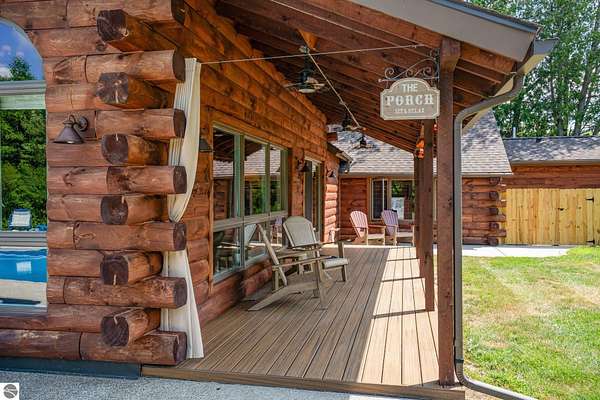 What an incredible find! Nestled in the heart of the Huron National Forest, this sprawling 220+ acre estate sits at the end of a half-mile private drive, bordered by over 20,000 acres of national forest on 2.5 sides. The property features three meticulously updated homes offering more than 6100 square feet of finished living space in all. This includes the original 1920s log home with four bedrooms and two natural stone fireplaces, as well as six additional outbuildings. Floor-to-ceiling windows in the great room offer stunning views of the bountiful, beautiful wildlife. Step outside to a 20x30 pavilion with a stone fireplace, a 20x40 heated in-ground pool, and a pool shed. A 1,400 sq. ft. two-bedroom guest house is connected to the main home by a covered walkway. Across the asphalt drive sits a remodeled caretaker's house, ideal for rental income or guests. All three homes are heated by an outdoor wood furnace and equipped with automatic backup generators. A circle drive includes two 230A 120V RV hookups. The 40x103 pole barn features a 23x40 heated workshop, a 40x80 insulated section with wood stove, new LED lighting, and a 14x19 hunting/sports room with two large gun safes. The horse barn includes three stalls, a tack room with fireplace, and a service garage with roll-up door. Four livestock spigots are supplied by a dedicated well. Adjacent to the barn are two more buildings: a 17x39 garage and a 20x40 pole barn with horse stalls and drying lumber. Enjoy over four miles of wide, maintained trails through rolling fields and forest, six hunting blinds (three with food plots), and frequent sightings of large herds of deer--including impressive bucks. Apple trees on the property keep the deer nearby and offer a perfect fall harvest for homemade pies. This unique and private estate offers much more than can be listed here.