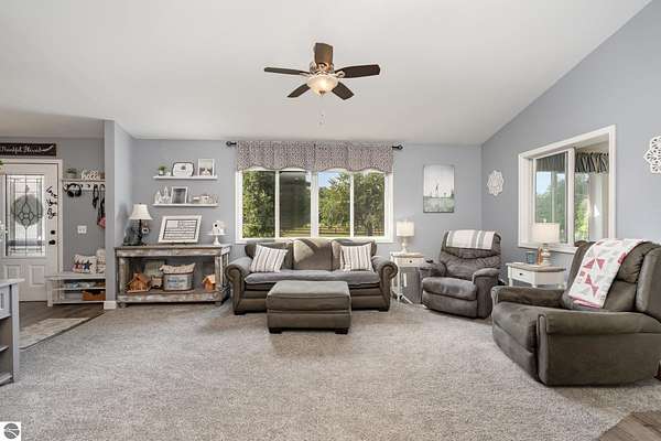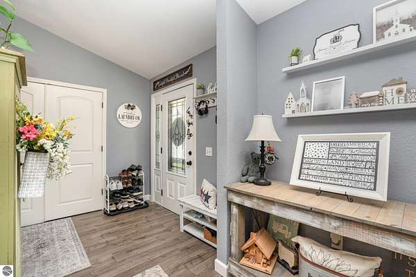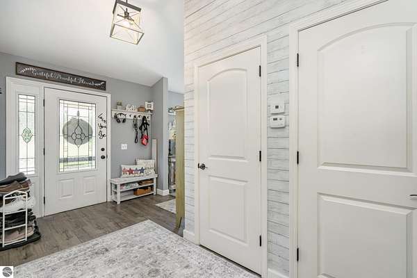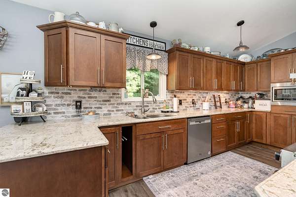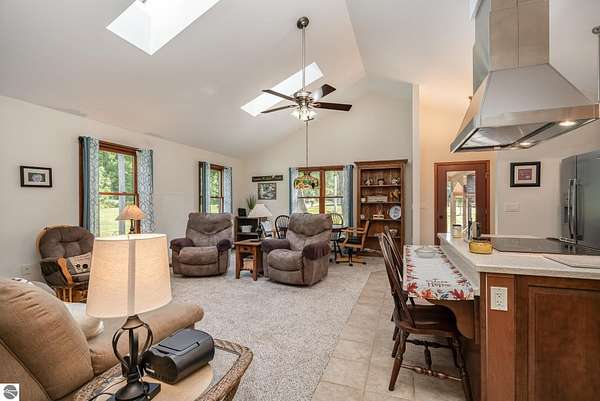- Cathedral Ceilings, Foyer Entrance, Great Room, Island Kitchen, Mud Room, Skylights, Solid Surface Counters