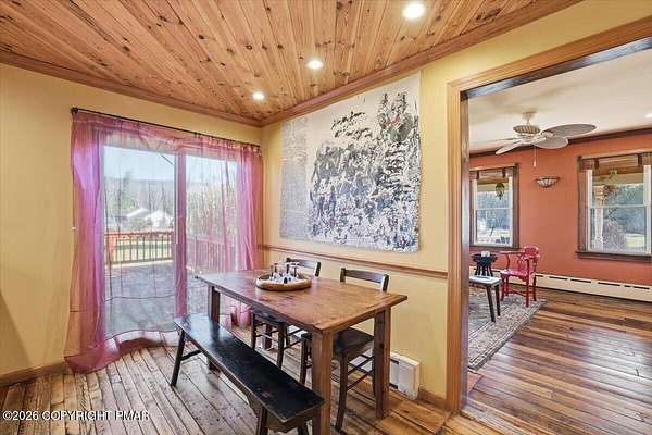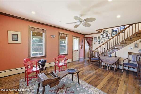 Charming, Eccentric Farmhouse beautifully maintained and thoughtfully upgraded! This 3-4 bedroom, 2.5 bath Colonial farmhouse showcases original woodwork and hardwood floors throughout. Features include a galley kitchen, office with built-in shelving, full unfinished basement, and pull-down attic offering plenty of storage. Located in quaint Jackson Township on a flat 2.03 acres, complete with fruit trees, a refinished deck/porch, and access to a private shared pond. Enjoy low taxes at just $5,604/year, no HOA, and no development--offering a peaceful rural setting while still being close to major highways and shopping. The main level offers a spacious galley kitchen with breakfast area, plus a formal dining room or family room, a cozy living room with stone wood-burning fireplace, and an office/den. Upstairs, the primary suite includes a sitting room or nursery, deep walk-in closet, and private en-suite bath. Two additional bedrooms and a full bath complete the second floor. Additional features include a laundry room, mudroom with side entry, and a convenient half bath. Outside, you'll find a detached 2-car garage, three attached storage units, and a wood shed stocked with chopped wood for the wood-burning furnace--perfect for efficient winter heating. A true must-see to appreciate the unique character and worldly design touches of this charming farmhouse. Schedule your private showing today!