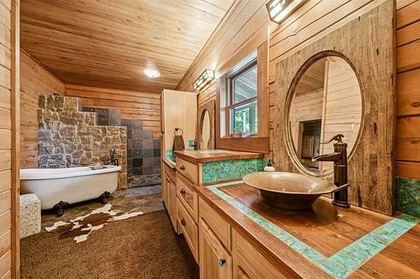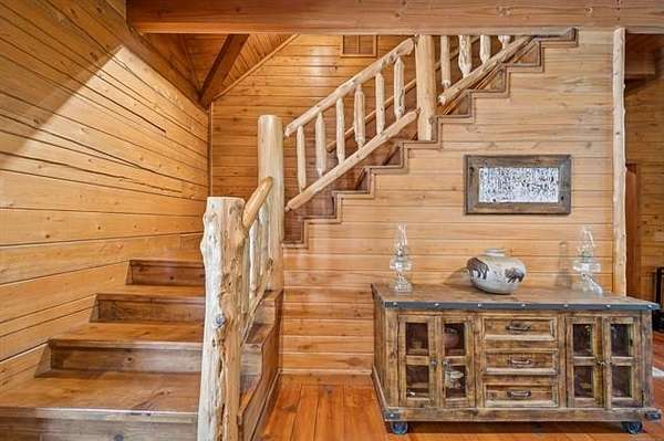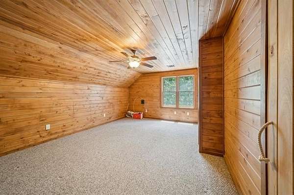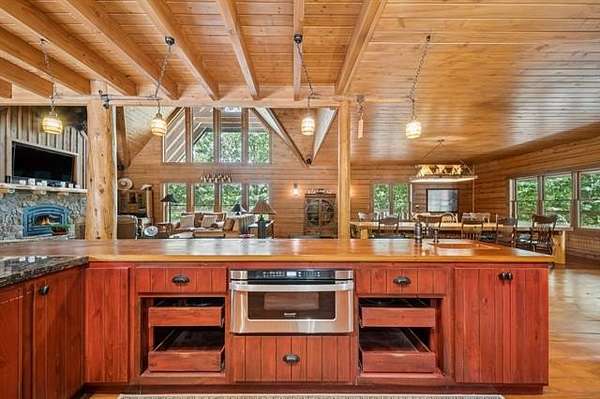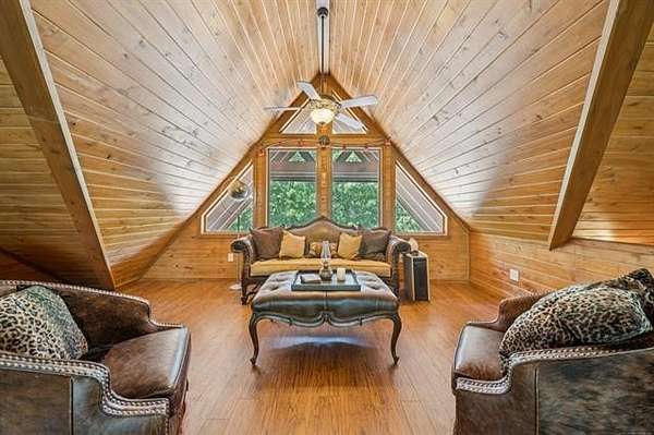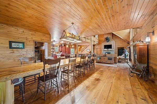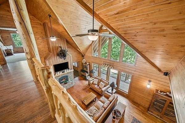 Discover the ultimate private retreat on over 54 secluded, wooded acres(+/-), featuring a stunning 4,658 sq. ft. (CH) custom log home designed for comfort, scale, and style. Built in 2011, this 2.5-story residence boasts 3 bedrooms, 2.5 baths, a dramatic great room with 22-foot ceilings, a loft overlooking the living space, and floor-to-ceiling windows framing breathtaking views of a 3-acre spring-fed, stocked pond, complete with a unique movable dock on a cable system. The full walk-out basement and wraparound porch enhance the home's expansive indoor-outdoor living.