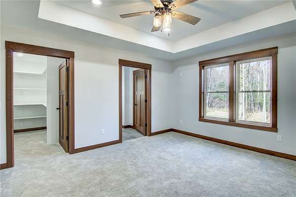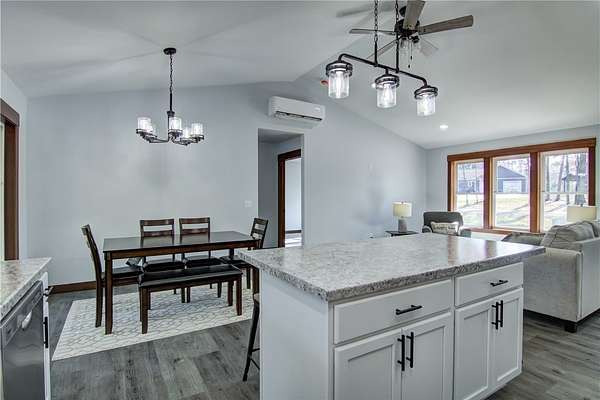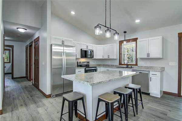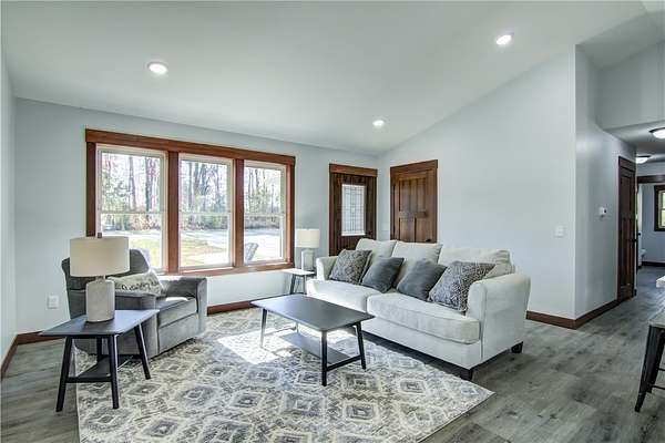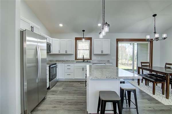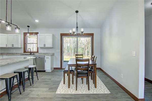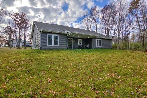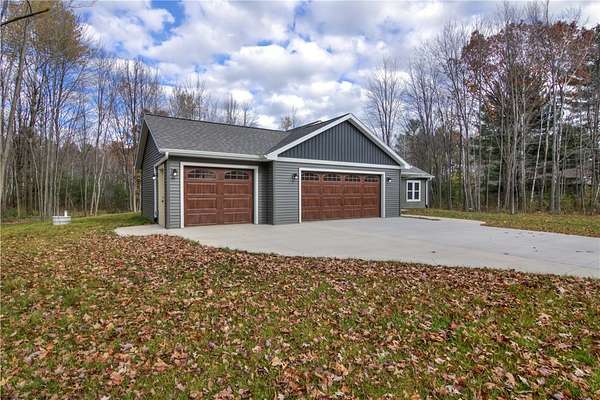Come check out this newly finished zero-entry 3 bed, 2 bath ranch home tucked away on a 1.58 wooded lot just outside Cadott. The home features vaulted ceilings in the living room, dining area, and kitchen. The master suite offers tray ceilings, dual sinks, a walk-in shower, and a walk-in closet. Wide 36-inch doorways throughout provide easy accessibility for everyone. You will enjoy the peaceful views from the covered front and back porch, surrounded by mature trees. The home includes a large 24x34 heated garage that is fully finished. Easy access to the freeway makes it an easy commute to work or vacations. Come check it out!