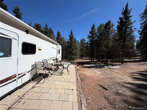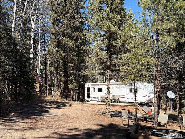 WOW! Private 5.25-Acre Indian Creek Retreat – Ready to Enjoy! Live water, so difficult to find is on this parcel with a pond, spring. and creek. Escape to your own private mountain getaway in Indian Creek with breathtaking views of Pikes Peak. There is a perfect mix of aspen, spruce, and pine and this property offers peace, seclusion, and a true connection to nature—exactly the right place for those looking to unplug and unwind. This is a turnkey setup—just show up and kick back. The piece of ground includes a well-kept 2011 32-foot Heartland pull-behind RV with two slide-outs, a 275 gallon water tank, and a fully insulated dry cabin complete with a cozy wood-burning stove for year-round comfort. A 12x16 storage shed with large access doors provides plenty of space for ATVs, gear, and outdoor toys. Solar panels and generator provide power to the RV and cabin. The year round active creek running through the adds to the natural beauty and tranquil setting. Approximately 1.5 miles from National Forest entrance for outdoor advetures, just hop on your ATV and go! With excellent 4 season access and the potential to develop the spring, this property offers both immediate enjoyment and future possibilities.