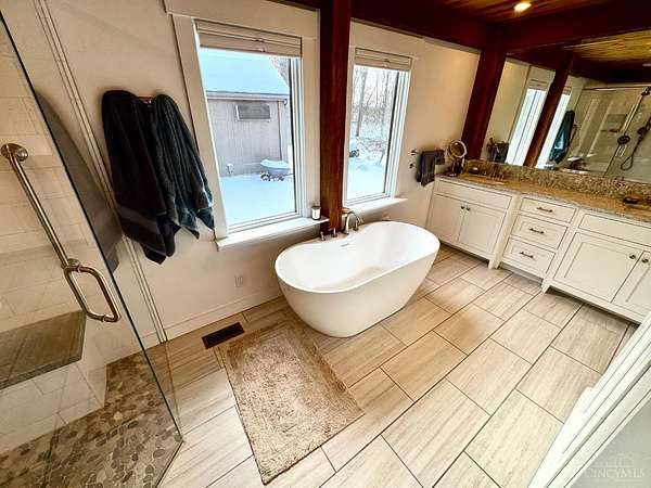 Custom Designed & Built Post & Beam Douglas Fir & Cedar Country Estate Home on wooded 2.5 acre Cul-De-Sac lot w/Childrens Tree House & Play House. Walls of windows and soaring cathedral ceilings for panoramic serene views of nature. Glamourous 1st floor MBed suite with walkout sitting room + skylights. Finished walkout LL guest suite. 20x18 Workshop Addition. Oversized garage w/stairway to huge 2nd level storage room. New HVAC 1/8/25. H2O Heater 2021. Ducts cleaned +plumbing +electric +furnace inspected/serviced fall 2025. Seller needs normal closing + extended occupancy to June waiting for new home. Leave offers open for 48 hours ** Lot size & property taxes copied from online Courthouse Records and subject to change. You must confirm on the county website.