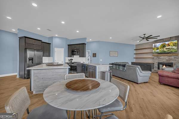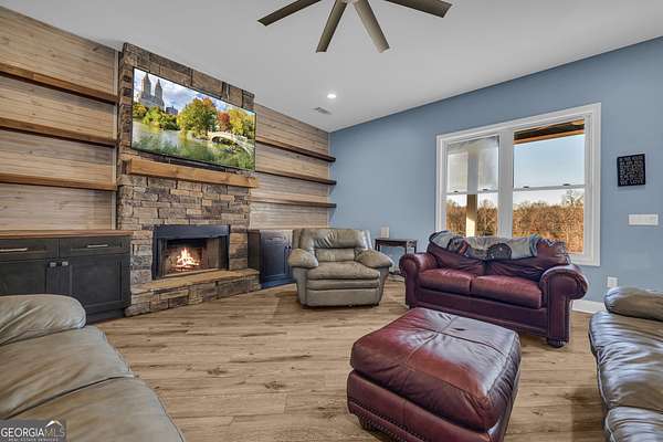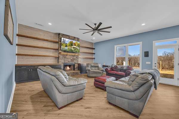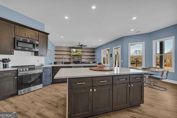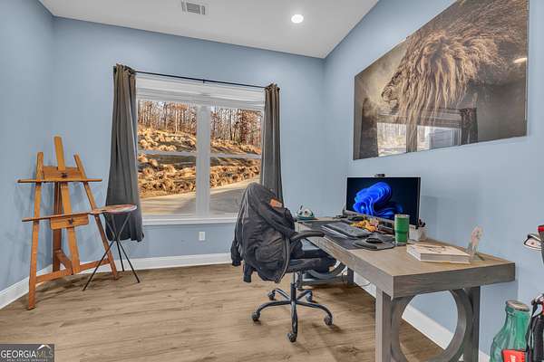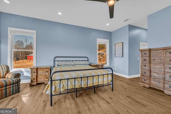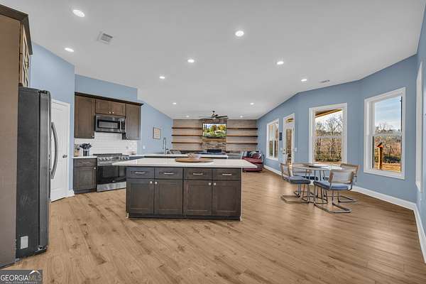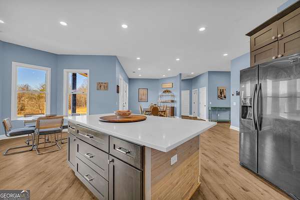 Beautiful horse farm in Franklin County set on 10 fenced acres, complete with a new red barn featuring two stables. Enjoy sweeping views of open pasture, the barn, and wooded surroundings beyond a peaceful creek. The home offers a convenient one-level layout with five spacious bedrooms and three full baths. At the heart of the home is a large open-concept living area that seamlessly blends the kitchen, dining, and living spaces, highlighted by a wall of windows overlooking the back of the property-perfect for taking in the serene countryside views. Upon entry, an office just off the foyer provides an ideal workspace before opening into the main living area. The kitchen features a large central island positioned between the dining and living areas, and all kitchen appliances are included. The primary suite offers private access to the back patio, two walk-in closets, and a spacious bath with a soaking tub and separate shower. Outdoors, fencing is already in place for both horses and dogs, and the barn even includes a dedicated spot for the resident barn cat. A rare opportunity to enjoy comfortable living with functional equestrian amenities in a peaceful Franklin County setting.