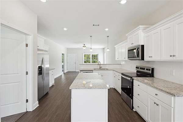 Seller is now offering $8,000 in closing costs with a full price offer! Brand New Construction in Ludowici. This 3 bed, 2 bath, 1,474 sqft home with a 2 car garage is located in Ludowici's newest community. This home features an open concept floor-plan. Stepping through the front door off of your covered porch you will walk into the spacious living room, opening up into the kitchen with a large island and dining room. The kitchen offers granite counter-tops, a ceramic tile back-splash, custom cabinets, and stainless steel appliances. Off of the living room you will find the 2 guest bedrooms, as well as the guest bath. The guest bath features a granite counter-top vanity, and a tub/shower combo. The master suite is located off of the kitchen and offers plenty of space and a large master closet and bathroom. The master bath has double vanity sinks, a garden soaking tub, and a separate shower with a glass shower door. There are 9 ft ceilings spanning throughout, Luxury Vinyl Plank flooring in the common spaces and bathrooms, carpeted bedrooms, and a covered back porch overlooking the stocked pond. This home sits on 2.14 acres, and is conveniently located at an approximate 5 minute drive to central Ludowici, and just under a 20 minute drive to Hinesville and Fort Stewart.