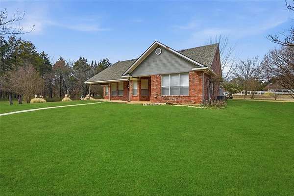 Nestled on 3.885 acres of picturesque land, this enchanting 3-bedroom, 2-bathroom home offers a delightful blend of country living and urban convenience. Lovingly cared for and updated, this cozy abode features a spacious kitchen with an inviting island, perfect for culinary adventures. Step outside to enjoy the tranquil pond for fishing, serene views of the countryside, and the possibility of catching a glimpse of deer roaming the backyard. With a generous shop, RV storage, and a workshop boasting 1,500 sq. ft. of space, this property is a true gem for those seeking a peaceful retreat with a touch of rustic charm. Embrace the magic of rural living while still being just a stone's throw away from Denison Downtown-a perfect haven for those who appreciate the simple pleasures of life in this beautiful setting.